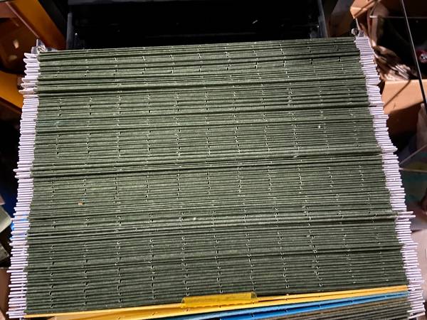 New but not in original package. Tabs are in original bags (12 in a bag). I bought these years ago & have not used all of them. Each lot will include 24 folders with 2 frames. The frames are letter size 14" in length. They can be trimmed to fit. 3 lots are available.