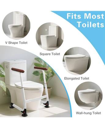 【HANDICAP TOILET RAILS FITS ANY TOILETS】:You don't have to worry about compatibility with these toilet handles for elderly and disabled, they are carefully designed to fit virtually any type of toilet (e.g. round, elongated, square, one-piece, etc.) and provide stable support once installed