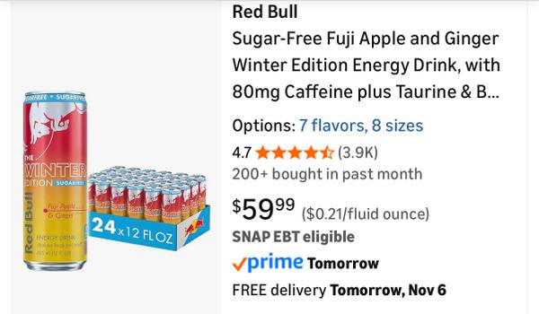 Red Bull Sugar Free Fuji Apple & Ginger 24 Case New In Box - $50 (Columbus)