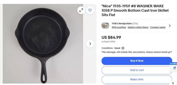 Wagner Ware #8 From 1935-1959. Wagner Ware 1058 #8. Cast Iron Skillet Asking $70. Or best offer.
