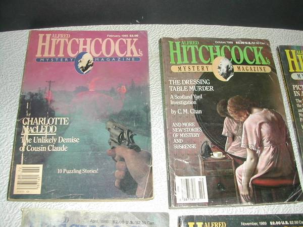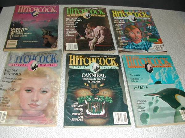 6 Vintage Alfred Hitchcock's Mystery Magazines 1980's.