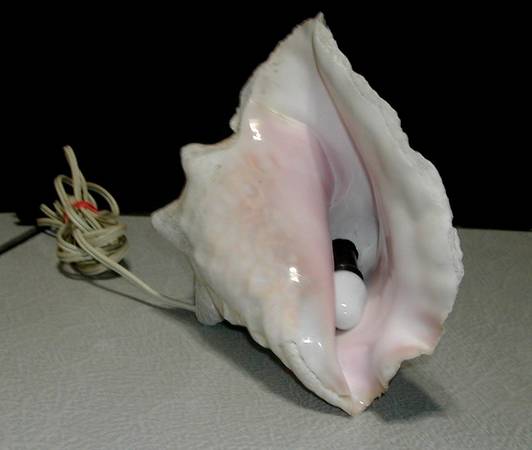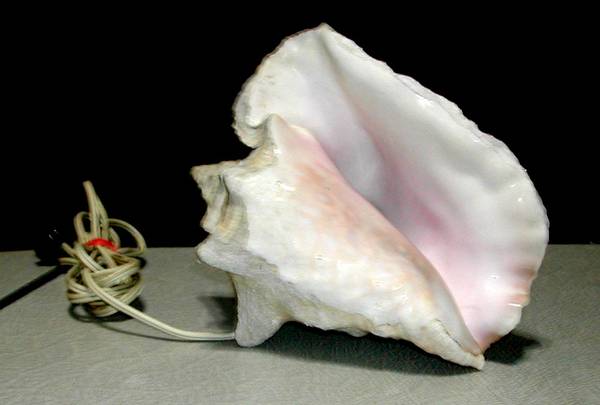 Vintage Conch Sea Shell Lamp, 8" long with plug in cord, works.