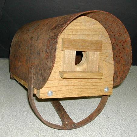 Vintage Grain Feed Scoop, heavy metal, Cedar Birdhouse, 11-1/2" long.
