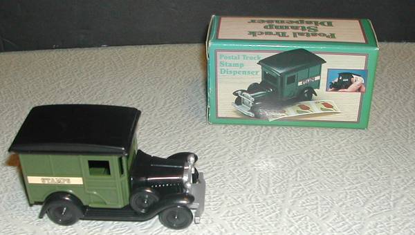 Postal Truck Stamp Holder, holds 100 stamps, made of durable plastic, measures 1-3/4" high and 3" long.