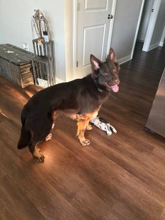 1.5 year old male. Liver coat GSD. Intact. Crate and house broken.