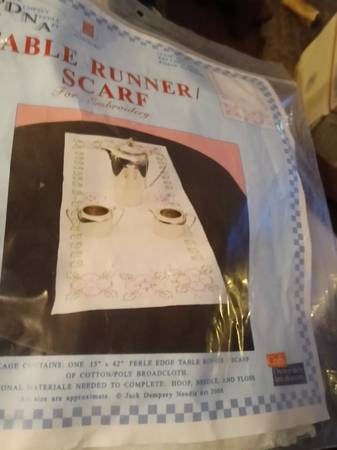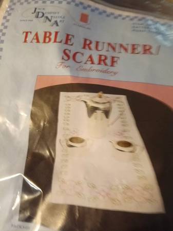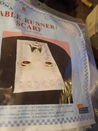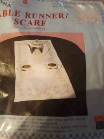 The product is a stamped embroidery table runners featuring Halloween and Thanksgiving themes from the brand Jack Dempsey Needle Art. These table runners allow for easy embroidery and cross-stitching projects, making them ideal for crafters looking to add a festive touch to their home decor. The designs on the runners are likely to include seasonal motifs such as pumpkins, turkeys, or other traditional elements associated with Halloween and Thanksgiving celebrations.