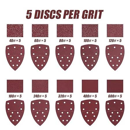 50PCS Mouse Detail Sander Sandpaper Hook and Loop 11-Holes Triangular Sanding Sheets for Mouse Sanders - Mixed Grits