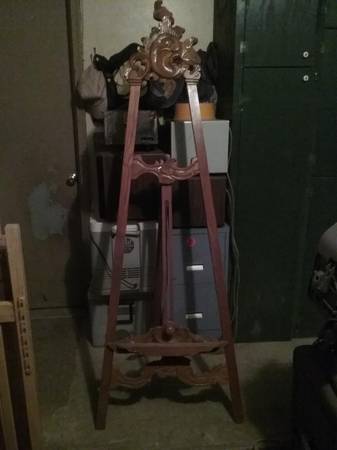 Have available a hand carved wood easel for $195. need more info email or call. See sample pics below