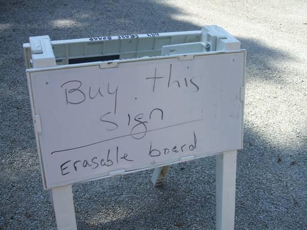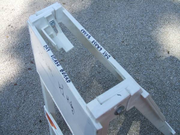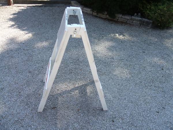 As shown and in nice condition. Use for roadside work, construction work, yard sales, etc. Stands 42 " tall x 24 1/2" wide. Folds up for storage. Note the small flag holder near top of the barricade. Upper sign improved by adding non-porous laminate for erasable marker use. A new one like this will retail for $80 or more. What is this worth? MAKE an OFFER ! I will complete a CASH transaction at the Kroger's store in Powell, OH or on US 42 North of Plain City, OH. Text only with your first name and I will respond. Thank you.