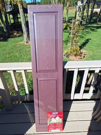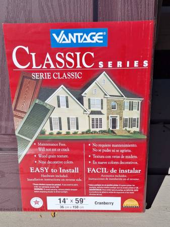 New in package Vantage window shutters, 14 x 59. I have 10 sets. Price is $30 each. Color is cranberry, looks like burgundy. If you purchase all 10, the price is $25 each. Call or text...