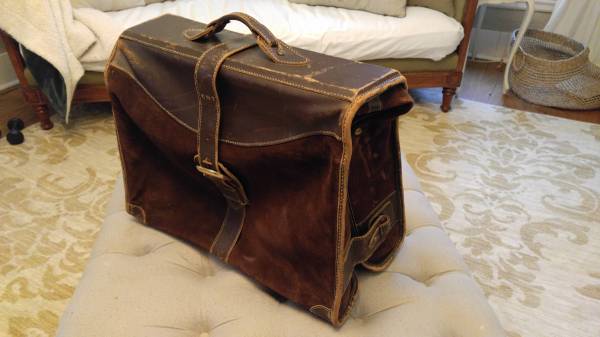 Vintage all Leather Travel Bag 25" wide 18" tall 12" deep $20 cash If posted, it's still available. Thanks for looking.