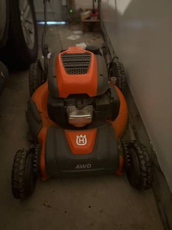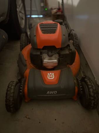 This Husqvarna self propelled all-wheel-drive lawnmower designed for mowing uneven wet and hilly terrain the engine powers all four wheel simultaneously for Xtreme movability the mower features a heavy duty steel deck and a powerful 190 cc Honda GCV 190 engine the three in one has a side bumper that doubles as a grass rake to pull grass in for a clean trim. Mower works great ,has been garage kept. Down sizing so I have no room or need for it.