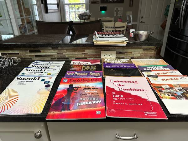 17 violin and 8 piano lesson books. Great for anyone teaching or playing the violin or piano. Great condition!