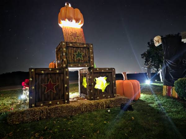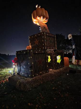 Crate Two: Styled as a classic shipping crate straight from the circus. On top of this crate sits the Jack-in-the-box, featuring the JACK pumpkin as the “Jack.” The pumpkin is made from the same material as the crates, sculpted from foam and hard-coated for strength and weather resistance.
