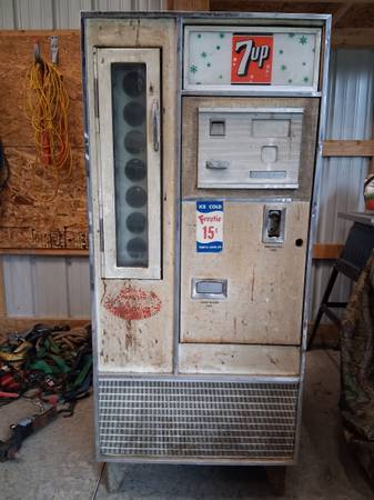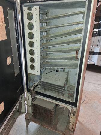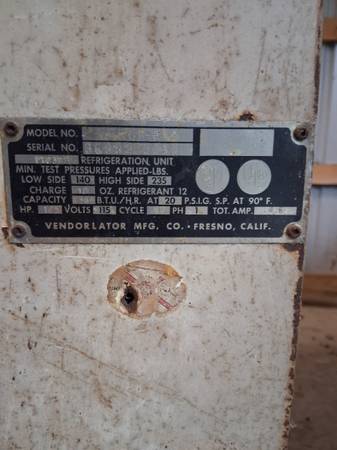 We have a 1960's Vendorlator soda machine model VF56 for sale. The fan comes on but I don't think the compressor is coming on. The door lock has been removed but is in a bag inside the machine....