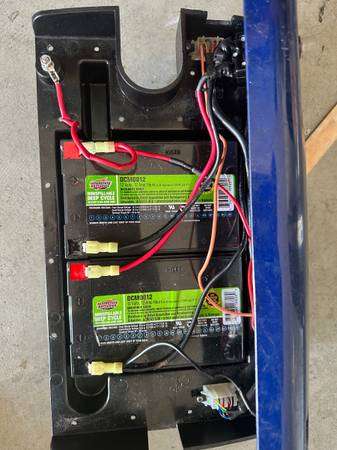 It takes two small 12 V batteries. The ones that are in it are about five years old. You can buy new ones on Amazon or directly from a battery