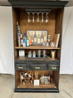 This piece of furniture is in wonderful condition .....pratically new. I can't move it to my new residence.....must sell. It has been upgraded with drawers, wine glass holder, and towel hook.