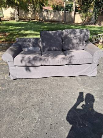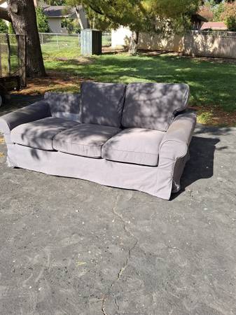 Ikea couch, not quite brand new but pretty good condition. It does look brand new underneath, perfectly clean. This was used for 6 months in a temporary apartment for visitors. All of the material pieces can be removed and washed. There is one back cushion missing, but I guess that's better than a seat cushion missing. Thanks, Dave