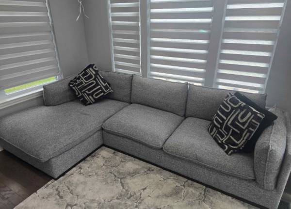 like new. No rips or tears. Very comfortable. Pillows included. Overall Dimensions: Width: 124 inches, Height: 34 inches, Depth: 67 inches