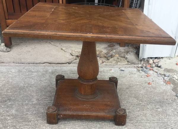 Table with pedestal base / end table accessory table - can be used as a coffee table, end table, etc. Approximate size 28 x 28 x 19 tall. Smoke free home. Options to deliver. $10 – Located in the...