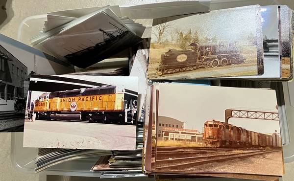 Garage sale with many vintage items, including stereo gear, shortwave radios, other communication equipment from the 1950s-1970s. Vintage camera gear, possibly some records. Mid-century decor and housewares. Vintage advertising, including old postcards, hundreds of old train photographs, vintage/antique books, pulp paperbacks, and 50s-70s magazines.