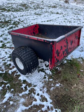 Selling a solid 12 cubic foot lawn/garden cart – perfect for hauling mulch, firewood, tools, yard waste, or anything else around the property. This is a heavy-duty poly cart with a steel frame and large pneumatic tires for easy rolling over rough terrain.