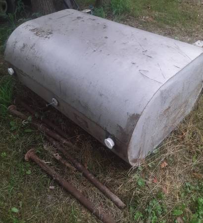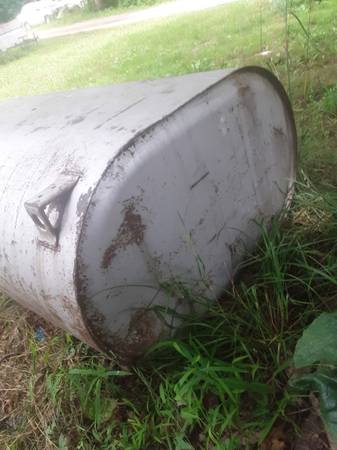 250 or 275 fuel oil tank with legs and all hardware and caps. One leg is rusted at end. We had that leg on blocks. Tank very solid and usable. Recently took out of home basement. Converted over to gas heat. Tank no longer needed. Fuel oil was drained. Ready for pickup.