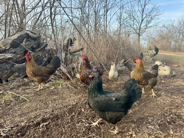 - **Breeds:** Includes a variety of mix breeds such as Brahma, Orpington, Ameraucana, Whiting, Leghorns, Easter Egger, cochin, black sex-link, barred Plymouth Rock, and Wyandotte, resulting in a colorful and productive mix. Great at foraging, low maintenance mix.