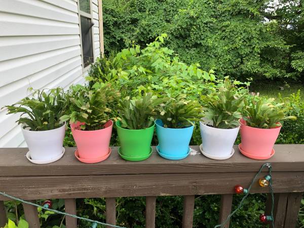 i have several large thanksgiving cactuses that are in bloom!! 5 inch pots with drain dish.