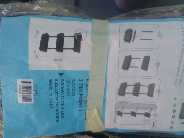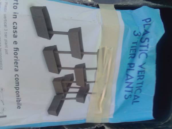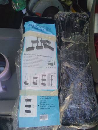 2-Plastic Vertical 3 Tier Plants" planters. New/ unused