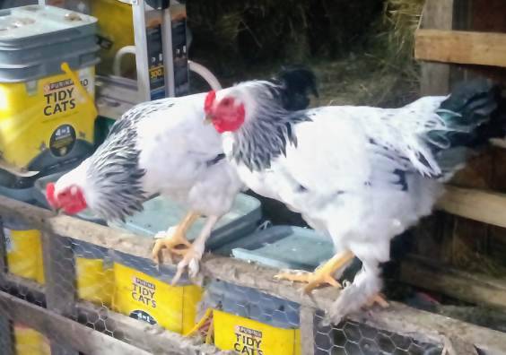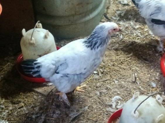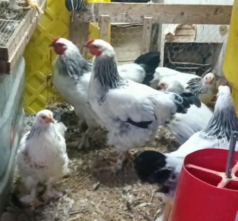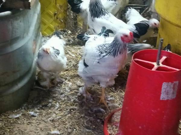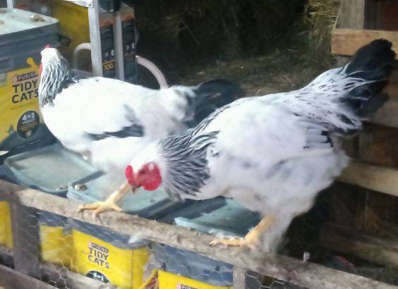 Breeding trio of Light Braham chickens. this is 2 hens and one rooster. $50.00 .. Extra hens available at $20.00 each. Several hens to choose from,