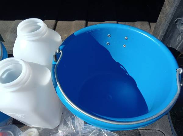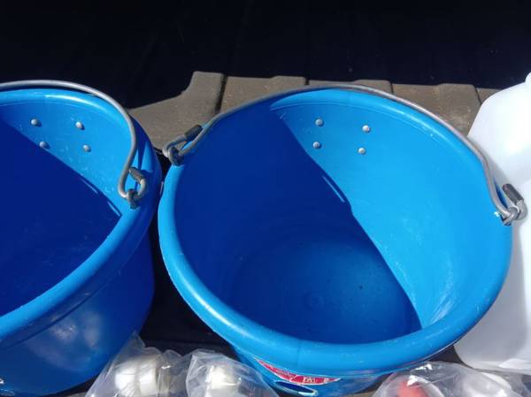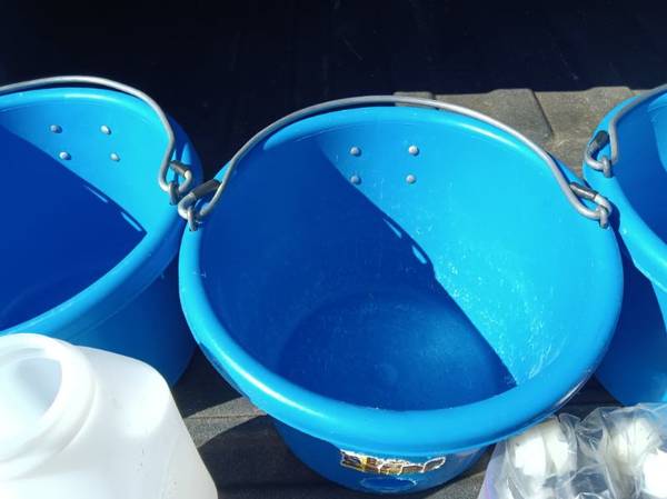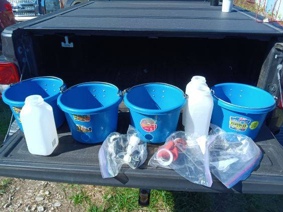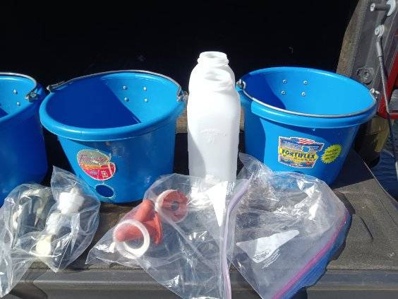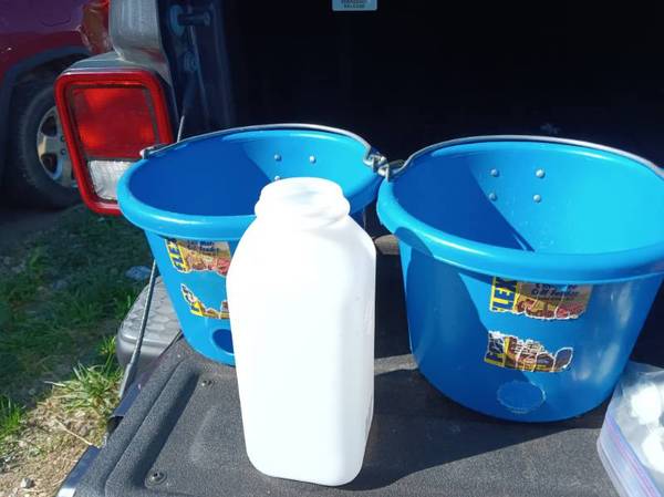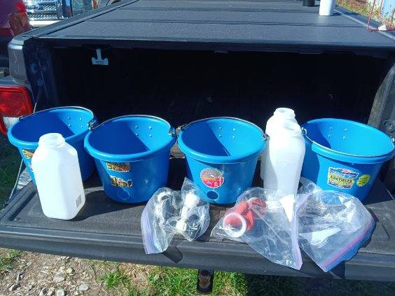 4 Calf feeder Buckets and 3 Bottles with nipples and rings - $65 (Huntsville)