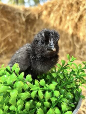 Ayam Cemani chicks ; please buy them in some hatching for the season . 20/each i have 10. 3 off heat . 2 are 8 weeks old . 1 is 10 weeks old . The 10 babies are 1 week old 43130