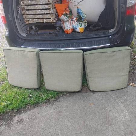 Have available a large selection of patio chair cushions for $5 each. Need more info email or call. See sample pics below