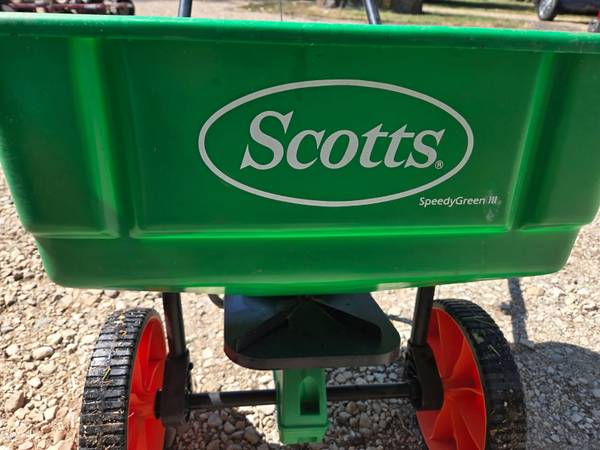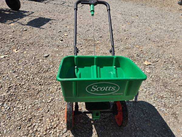 Scotts Fertilizer Spreader. Great for spring lawn fertilization and winter salt spreading. New without tags.