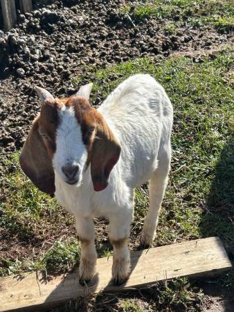 Boer buck kid for sale. He is 7 months old if interested feel free to message me or want to know about him. Asking price is $400 or obo