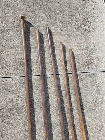 These range in length from 4'6" - 5'10". Based on 1st picture left to right. Short pinch point $15 Tamping $SOLD Pinch point $25 Pinch point $SOLD Medium pinch point $15