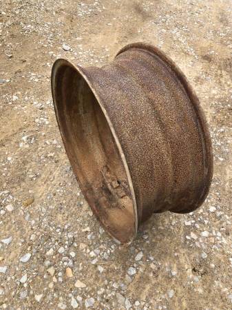 12/30 rear single bevel tractor rim, decent shape just rusty, valve stem okay