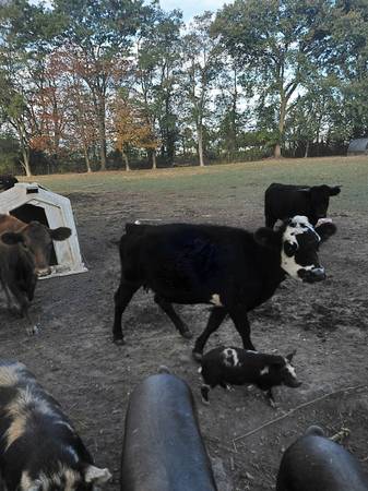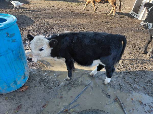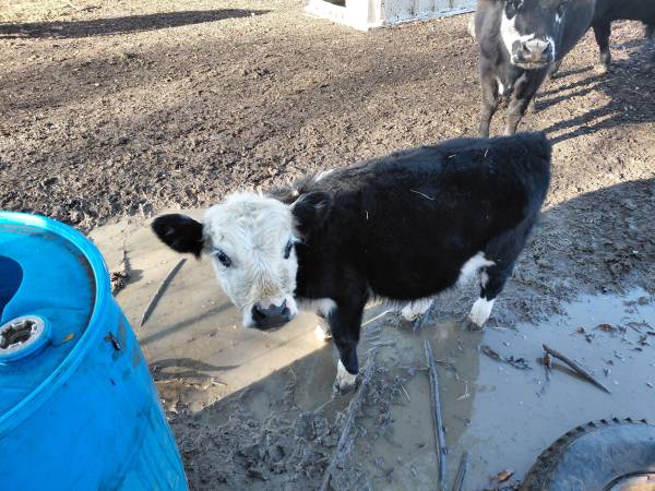6 month old bull calf. Mom is dexter/mini hereford (shown in pics) and sire is mini hereford (shown in pics). Asking $1200.
