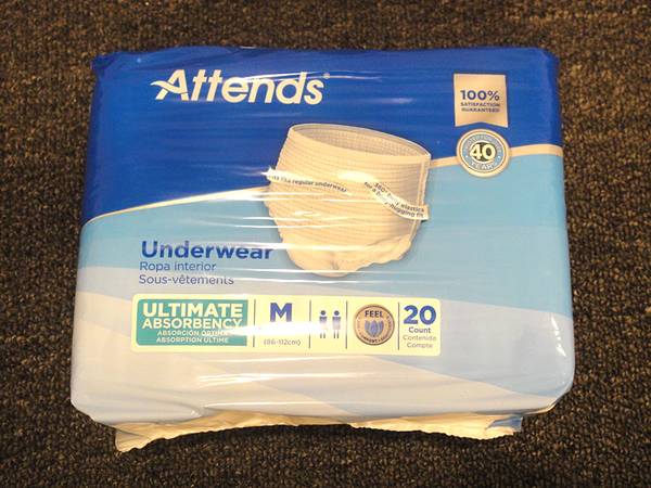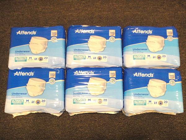 Lot 4 (120 Total Undergarments): 6 Attends Ultimate Absorbency Underwear (20-Count / Size M) – PRICE = $40 for 120
