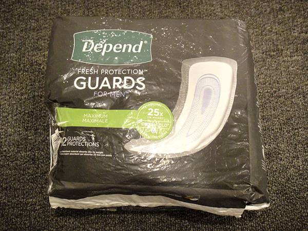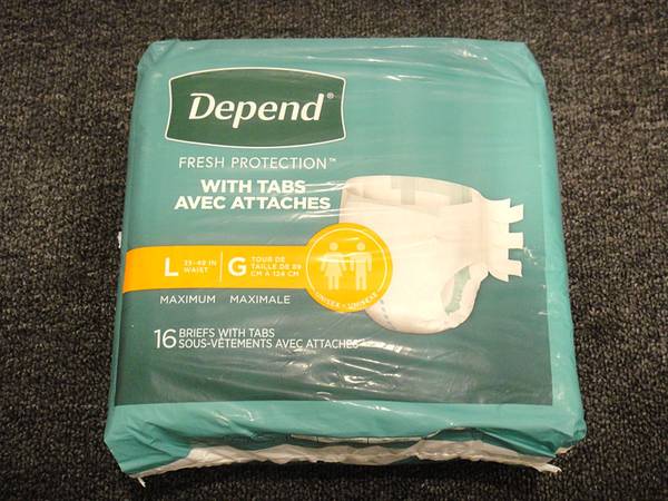 Lot 6 (72 Total Undergarments & Guards): 2 Depend Maximum Fresh Protection Underwear with Tabs (16-Count + 11-Count Open Bag / Size L) + 1 Depend Maximum Fresh Protection Guards for Men (45-Count Open Bag / Size Reg) – PRICE = $30 for 72