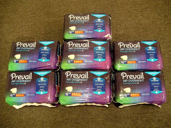 Lot 2 (112 Total Undergarments): 7 Prevail Air Overnight Maximum Absorbency Briefs (16-Count / Size 1/M) – PRICE = $40 for 112