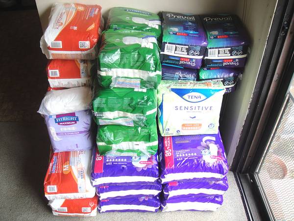 Lot 5 (49 Total Bladder Pads): 1 Tena Sensitive Care Ultimate Absorbency Bladder Pads (29-Count Open Bag / Size Reg) + 1 Medline FitRight Maximum Absorbency Long Bladder Pads (20-Count / Size Reg) – PRICE = $15 for 49