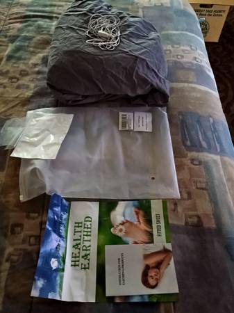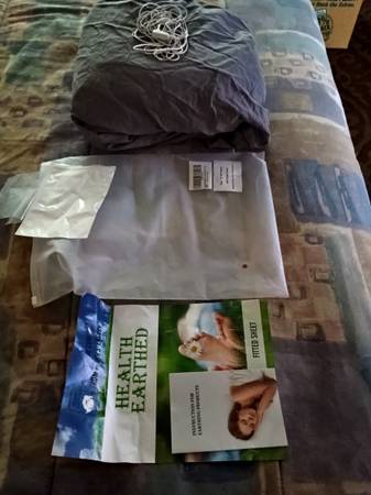 King sized fitted sheet Color is gray Like new Plug in to outlet/ get grounding earth energy Paid $200 for it Have 2 others this is extra