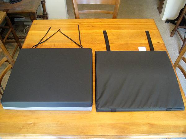Up for sale is a lot of 2 large rubberized wheelchair seat cushions, both in like new condition. One is black and gray, made of thicker foam and measures about 18” long x 16” wide x 3” thick. The other is all black, has tapered foam with a firm base and measures about 18” long x 17” wide x 1.5” thick. If these are something you could use, please send me an e-mail and you can stop by to pick up both of them together as a package deal for only $10 firm (cash only at time of pick up). Thanks for looking!