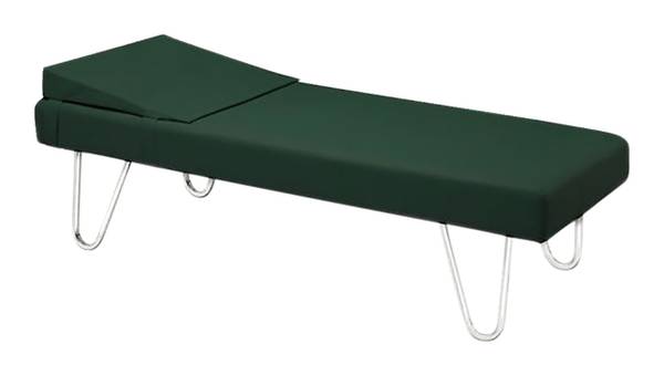 New Beige Chrome Leg Recovery Couch 27" wide x 73" long; never used and still in original bubble wrap. Includes removable head rest (attaches with velcro) but no paper dispenser. See photos;...