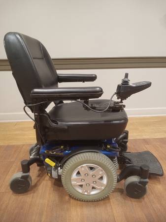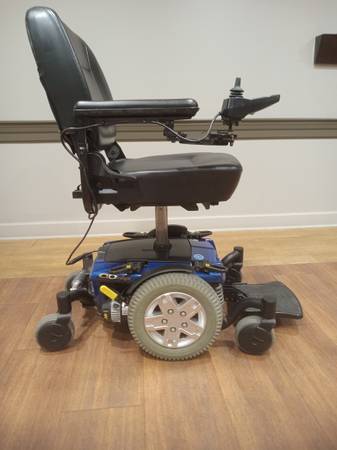 Highback seat that reclines and arms that adjust up or out for your comfort. Seat also has a lifting option that assist you when standing or getting in a cupboard. No rips or tears. Has a 1-5 speed controller. 13" drive wheels and 7" casters, makes for easy maneuverability for gardening or other obstacles. Strong batteries and like new tires with a lot of tread. Includes charger. Delivered within 25 mi. of Columbus. Come take it for a spin. I will gladly answer any questions. Call or txt Pete show contact info