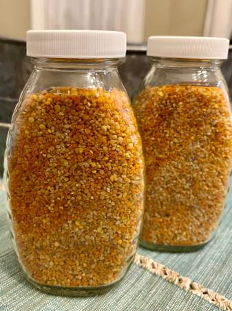This raw, local pollen from my backyard hives in Galena, OH is fresh and unprocessed. I freeze it after collecting and package it in 7 oz. glass jars. Local pickup available, or I can ship 2 jars...