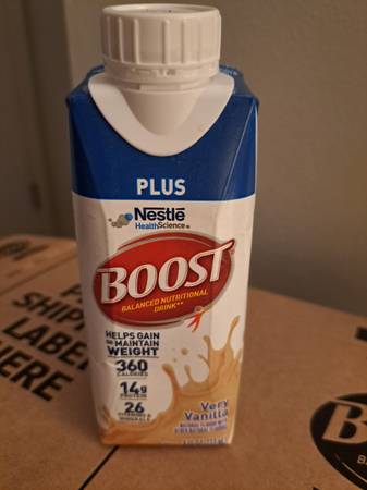 Boost PLUS 24pk Cases While Supplies Last 360 calories 14g protein 26 vitamins Meal Replacement Shake Balanced Nutrition Vanilla