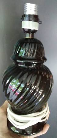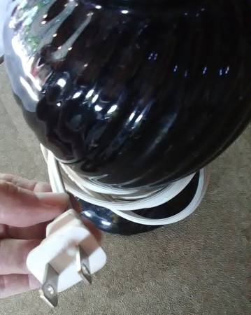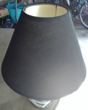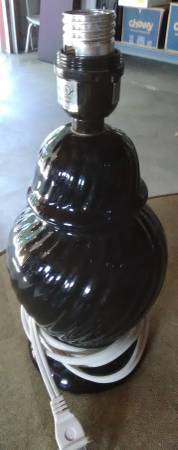 Nice ceramic lamp with wavy texture design. No chips, no scratches, nice smaller lamp with shiny black appearance. and shade is good condition with no damage. Lamp: 10 1/2" tall x 5" center. Shade:...